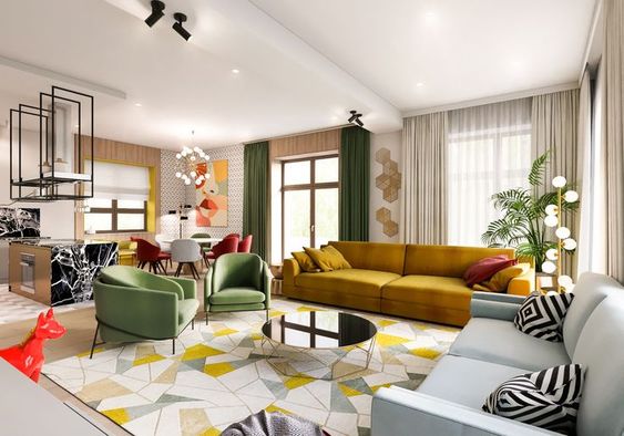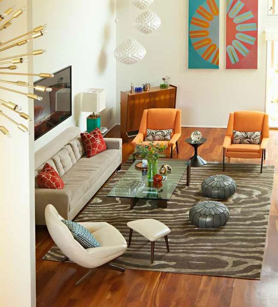 Vào thời điểm những năm 1960, đồ nội thất được phát triển theo xu hướng hiện đại, thiên về đường cong sâu rộng, các gam màu đỏ, cam, be được sử dụng phổ biến.
